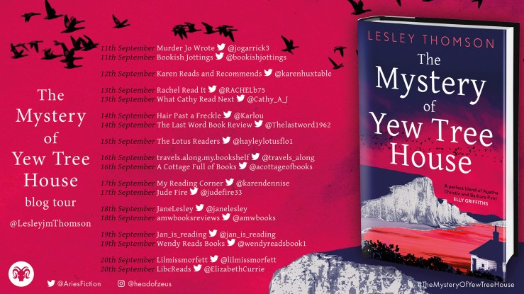 Welcome to today’s stop on the blog tour for The Mystery of Yew Tree House by Lesley Thomson, which will be published tomorrow. My thanks to Poppy at Ransom PR for inviting me to take part in the tour and to Head of Zeus for my advance review copy. Do check out the post by my tour buddy for today, Rachel at Rachel Read It.